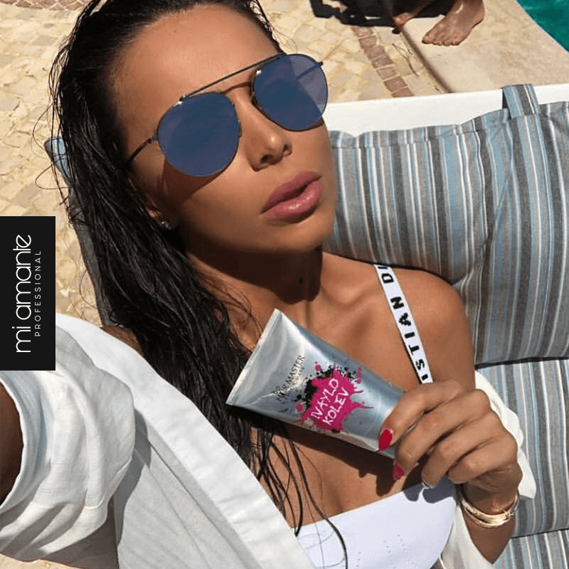 Mélyen hidratáló és újrastrukturáló hajmaszk, gyengéd karamell illattal.