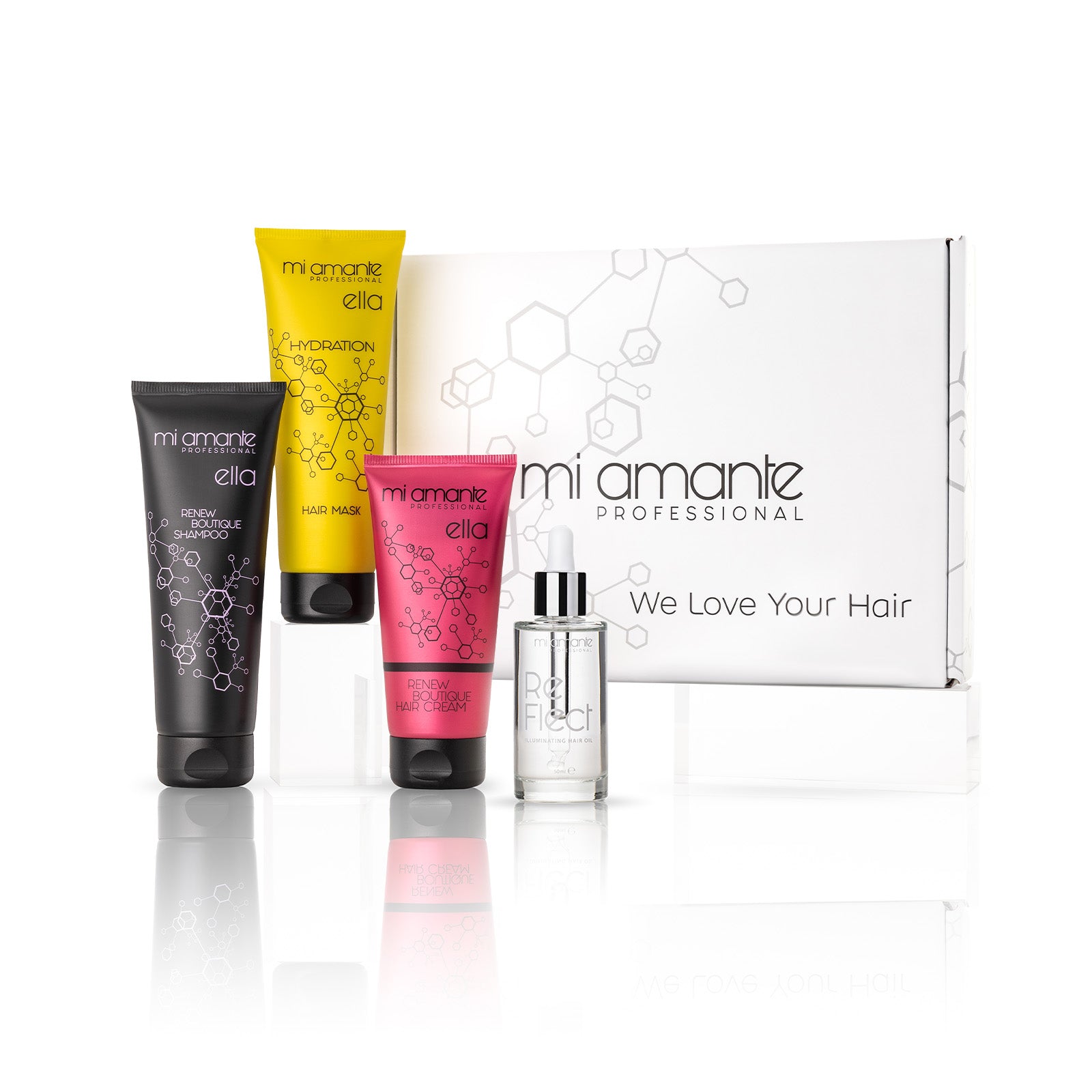 Mi Amante Hydration Hidratáló szett, amely magában foglalja a száraz, vastag és kemény haj problémáinak megoldásának minden lépését. Biztosítja a szükséges hidratálást, és még a legrugalmasabb, száraz és törékeny hajat is képes megszelídíteni.